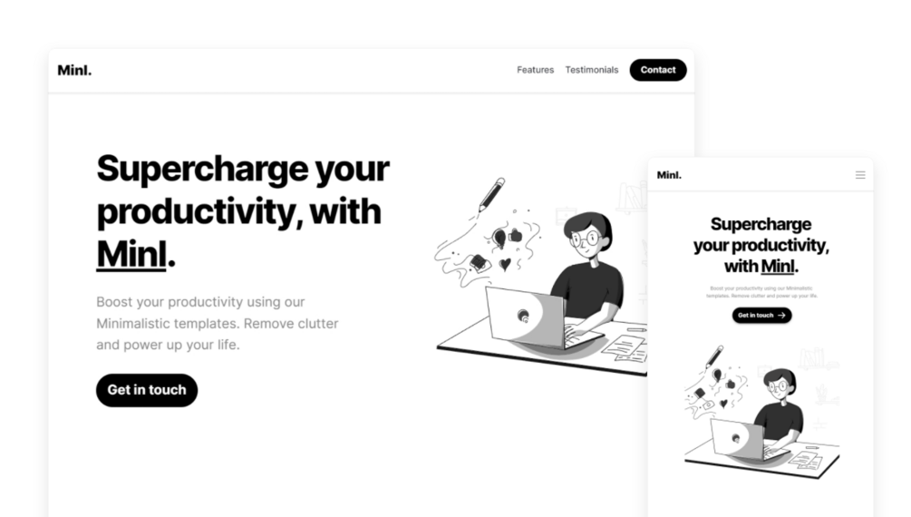 - No headaches required: Minl is built on Framer Sites, so it's super easy to make visual changes with no coding skills required. You can easily publish your website template within minutes.